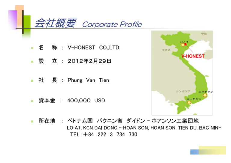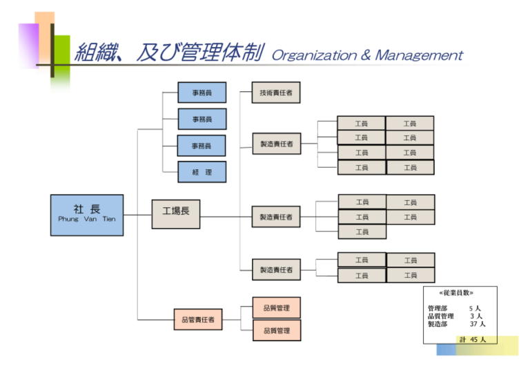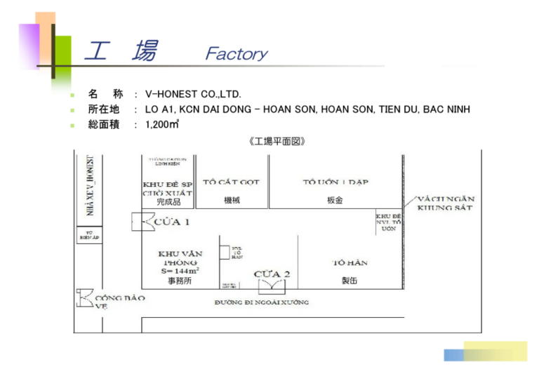 EPE(輸出加工企業)形態で投資認可を取得しているので、輸入関税やVATメリットがあり、日本はもとよりベトナム国内外と取引することができます。