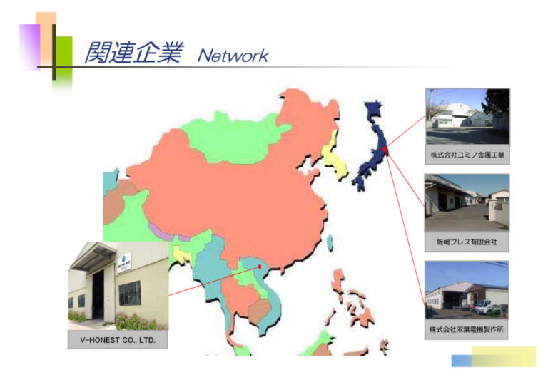 「日本品質&ローコスト」を実現するため、日本で製造業を営む異業種3社のノーハウを取り入れて設立した会社です。